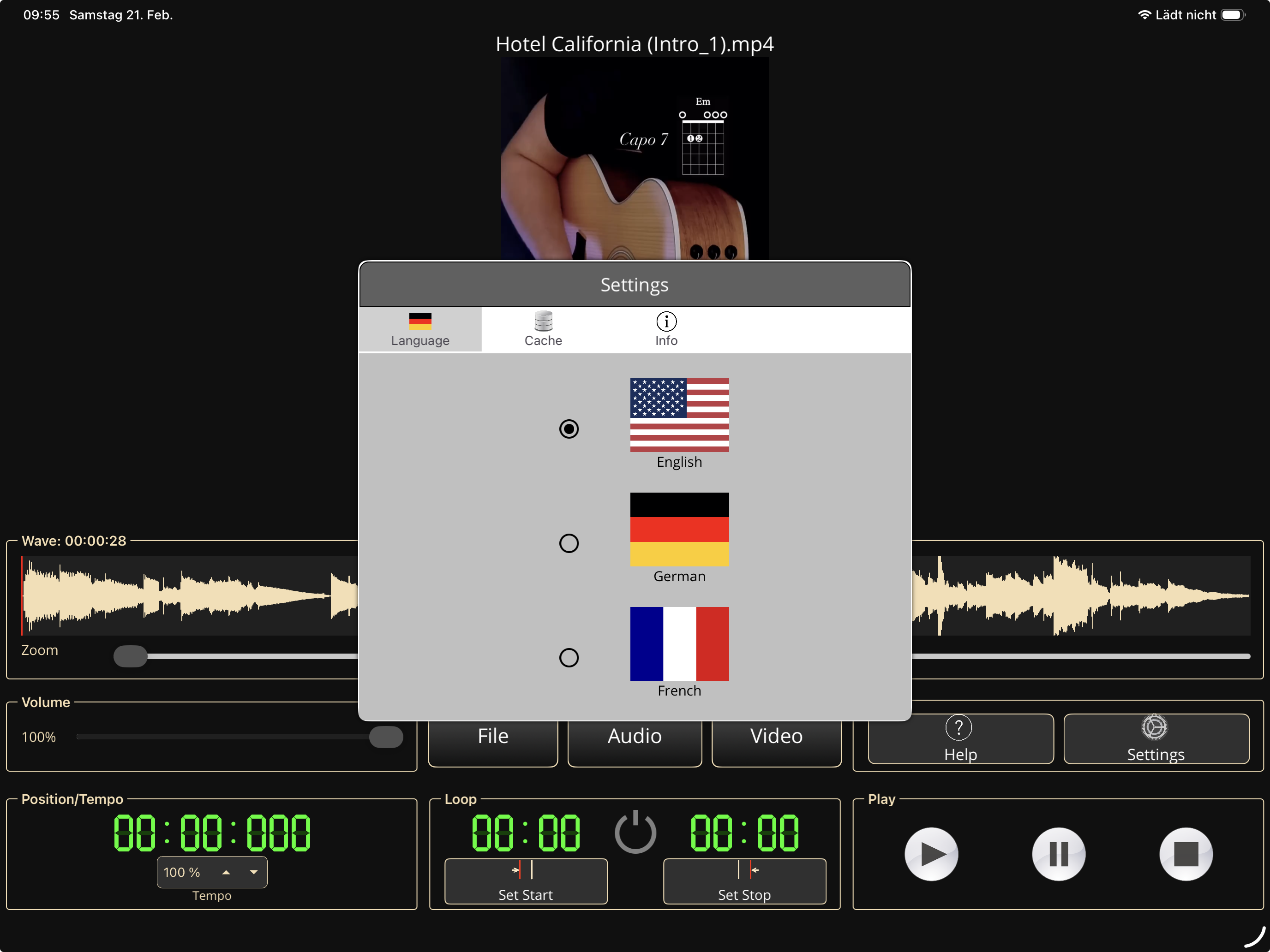 The main use-case for “MusicTrainerProf” is to repeat specific sections of a movie or audio-file.
