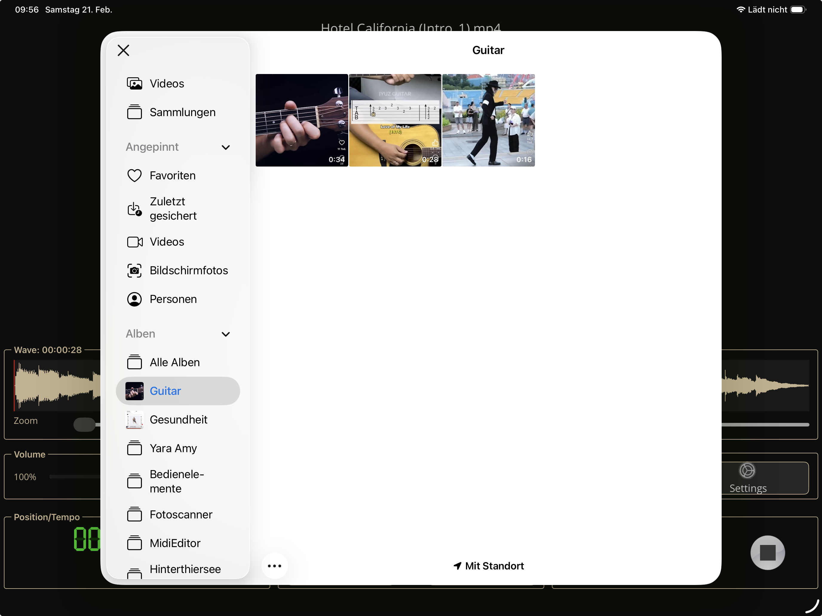 With that dialog, an existing audio-file can be loaded from the music-library:
